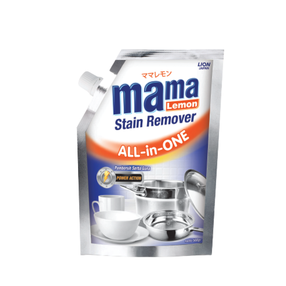 MAMA Lemon berinovasi menghadirkan cairan pencuci serbaguna MAMA LEMON Stain Remover All In One. Dengan teknologi Lion Japan, Formula Power Action dan butiran halusnya mampu membersihkan peralatan berbahan stainless steel, keramik, porcelain, dan melamin seperti kompor, tempat cuci piring, meja dan keramik dapur. Ada MAMA, Semua Pasti Beres.